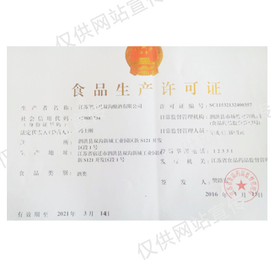 • 【产品名称】:双沟生产许可证